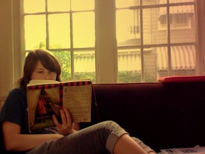 Zoe Huber-Weiss, engrossed in Water for Elephants (Photograph courtesy of Zoe Huber-Weiss '13)