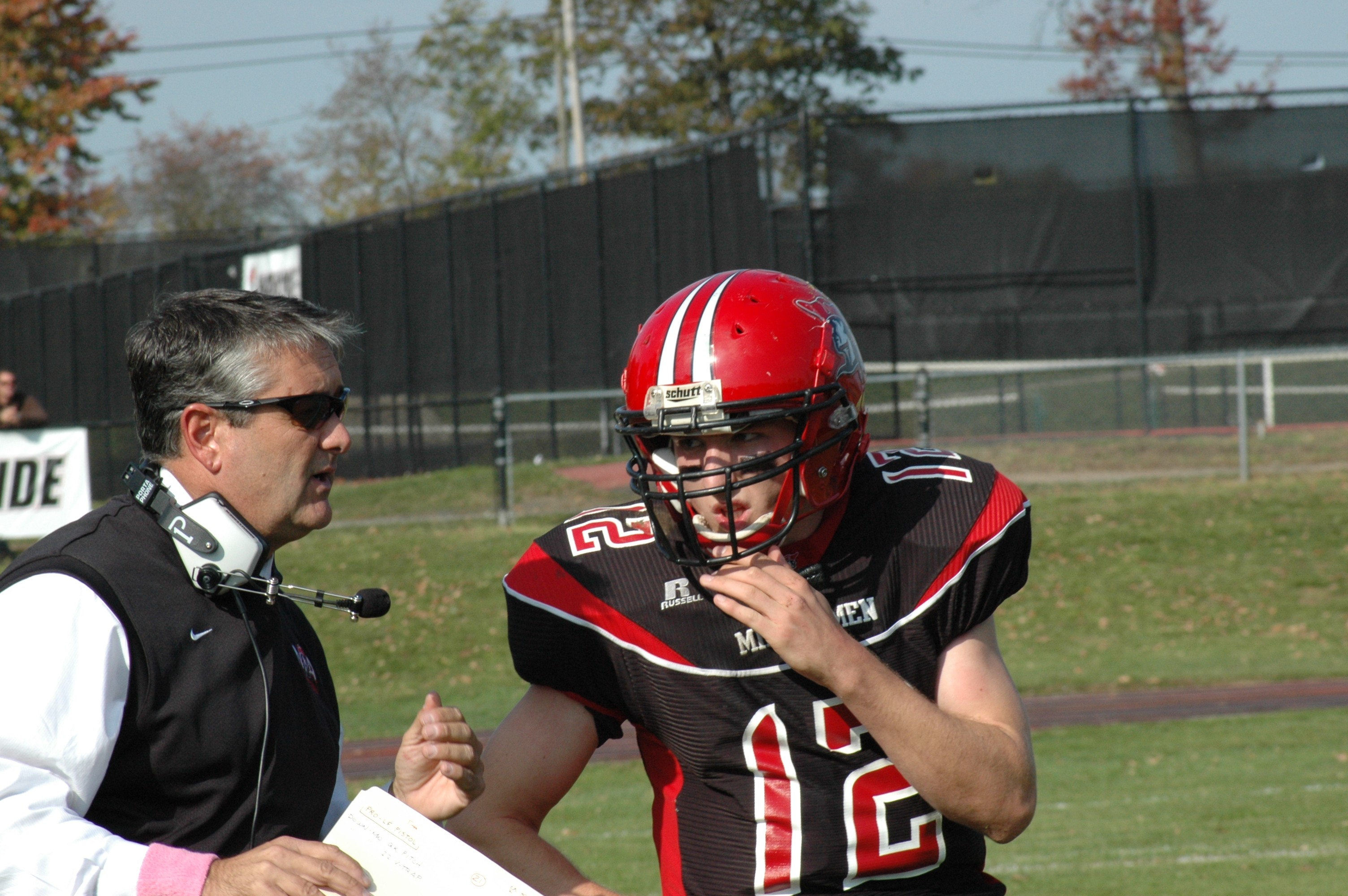 Senior captain Jack Lawler 11', converses with first year head coach Steve Trivino this past fall as Jack led the team to one of their best records in recent years. (Photo courtesy Mr. Scott Johnson)