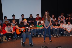The cabaret featured many solos and duets, performed by Ben Hyatt ’15, Glenn Haines ’15, Oluwadamilola Oshewa ’16, Sam Sidi ’16, and Charlotte Smith ’15. As Mr. Lal explains it, “If students want to, they can come to me and we can work on their solo together.” Singing a solo in front of so many people is certainly a daunting task. When asked about her performance, Oluwadamilola Oshewa said, “It [performing the solo] was okay for me. During rehearsals I was struggling with the song. There wasn’t much practice time.” In addition, 8th graders Glenn Haines and Jacey Sullivan ’15 accompanied songs by playing the guitar.