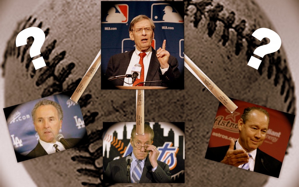 Bud Selig is attempting to control and manage a wild, troubled group of owners of Frank McCourt of the Dodgers, Fred Wilpon of the Mets, and Jim Crane of the Astros (from left to right). (Image created by Chewy Baumel '13)