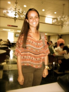 Phoebe Feinberg '12 models some geometric prints! (Photo by Sydney Alschuler '12)
