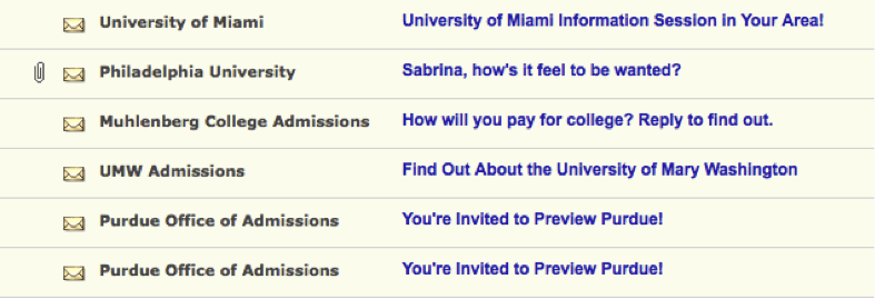 The amount of outside information that high school students are bombarded with is ridiculous. The College Board is notorious for using the information students give them when they take the PSAT sophomore year to flood students with letters and emails from colleges that they never even knew existed.  After talking to a friend who foolishly gave the College Board her email, she remarked that since the PSAT, she has received over 150 letters from colleges and pages of emails. Students not only receive information from colleges but also frequently get letters in the mail from tutoring programs, which each guarantee that through them, students will receive good scores on the SAT. By incessantly being contacted by colleges and tutoring services, high school students are constantly reminded of the pressure to do well on standardized testing and the fact that the college decision is around the corner.