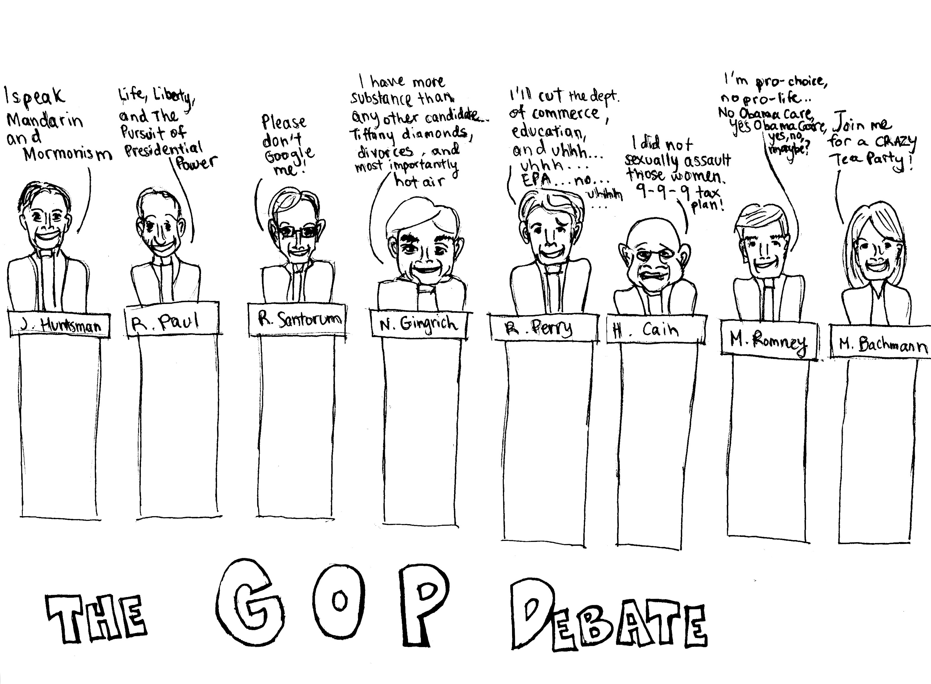 For Herman Cain, it seems we are unsure about the legitimacy of his campaign. When asked what would happen to NA if Cain was elected, Mr. Gilbreath says, “I don’t know how exactly his election would affect the school. I feel if you were to distill his views to his slogan, he would seem disconnected to his values. It will be interesting to see how the sexual abuse case will affect his campaign.”