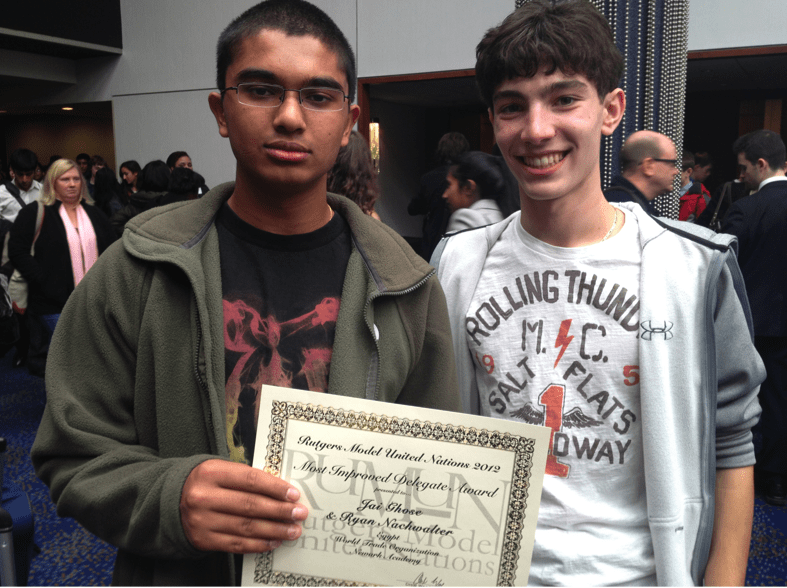 Jai Ghose ’14 and Ryan Nachwalter ’14 won the award for the Best Position Paper at the Rutgers Model United Nations Conference. Photo courtesy of Mr. Vinikoor.