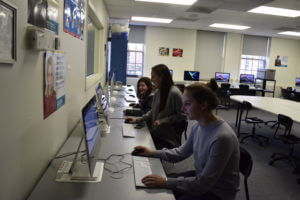 NA seniors working in the ILC – the interactive learning center – which is full of Macbook computers and has two printers. Taken by Zoe Ades ’18.