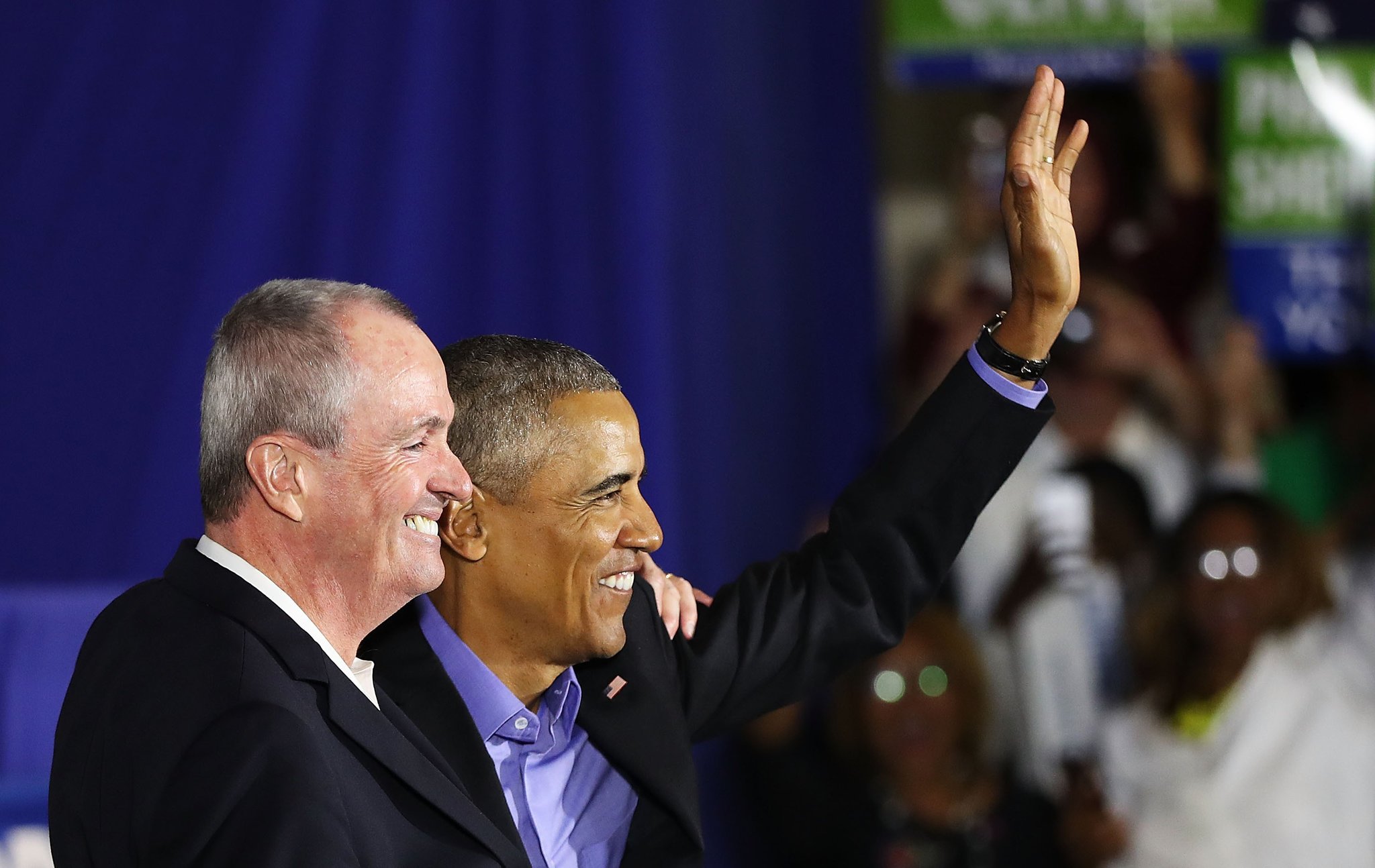 Phil Murphy with former President Barack Obama in Newark, NJ on Murphy’s campaign trail. Photo courtesy of The New York Times.