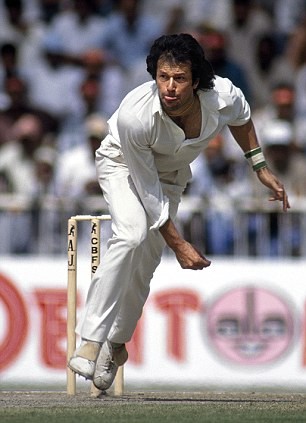 Imran Khan bowling for Pakistan at a match in Sharjah, UAE (1991).
