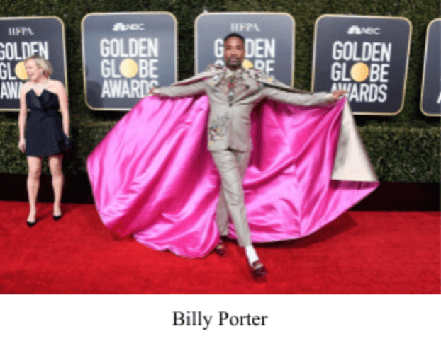 Billy Porter knows how to make an entrance. His Randi Rahm pink cape and bedazzled suit made quite a statement. His remarkable outfit took six months to make, but was worth effort, yielding an attention-grabbing look.