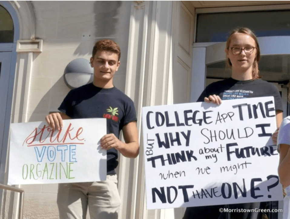 Newark Academy students protesting at the Climate Strike in Morristown