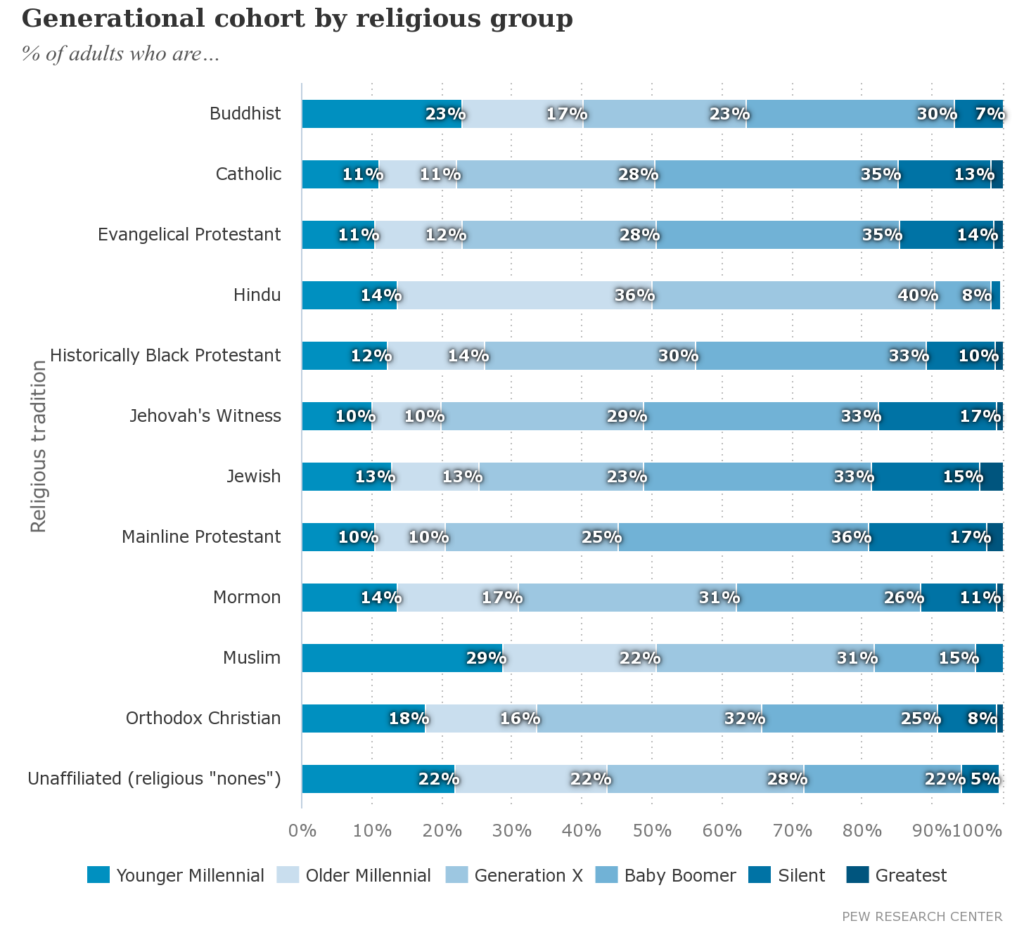 Pew Research Center’s Religious Landscape Study, 2019 https://www.pewforum.org/religious-landscape-study/generational-cohort/