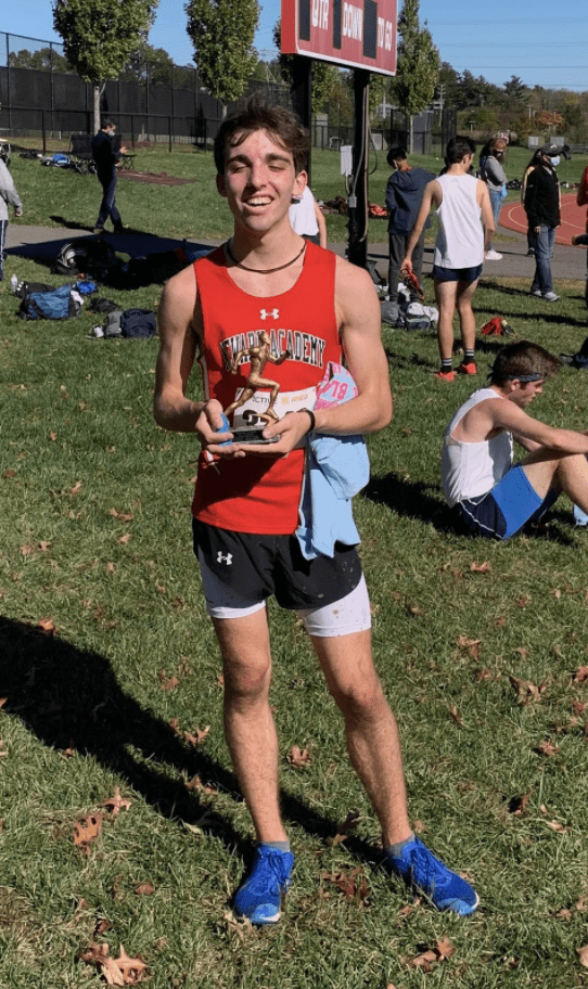 Starting with the Newark Academy Bill Blaskopf Cross Country Invitational, Pierce Malloy ‘23 (pictured above) placed 1st with a time of 17:41. Pierce, a second-year varsity runner, has shown exceptional skill and talent with a personal best of 17:27 for a 5k. Another exceptional underclassman runner is Luka Rodrigues ‘24, who has a personal record of 17:42. Luka has the fourth-fastest time for a 5k by any freshman in NA’s history. These are just two examples of what cross country has to offer in the future.