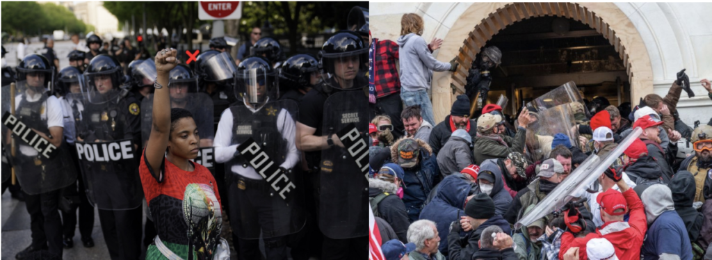 On January 6, 2021, the day set by the Constitution to certify the election results, America’s Capitol, the center of its democracy, was breached for the first time in 200 years. Thousands of Trump supporters stormed the Capitol and incited chaos in the name of President Trump. The central claim of their riots: a supposedly rigged election that led to his loss. As these Trump supporters broke windows and entered the Capitol, the police response to their violence drew questions and comparisons to the Black Lives Matter (BLM) protests last year.