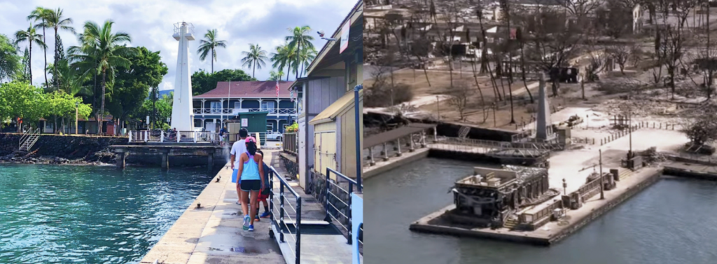 Lahaina Front Street Before Wildfires (8/17/19) vs After Wildfires (8/15/23)