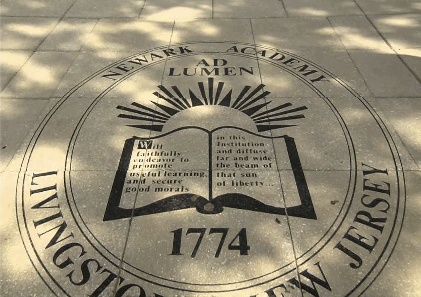 Symbol of Newark Academy’s motto “Ad Lumen” etched into the front foyer of the school. Image courtesy of newarkacademy.net